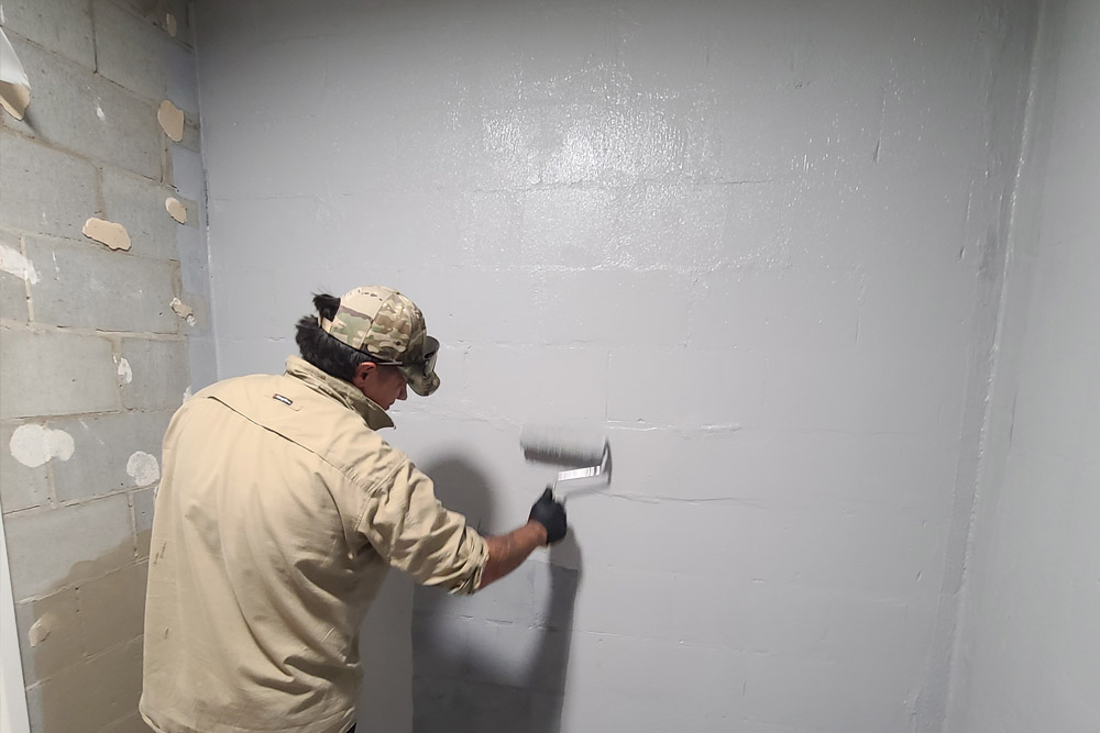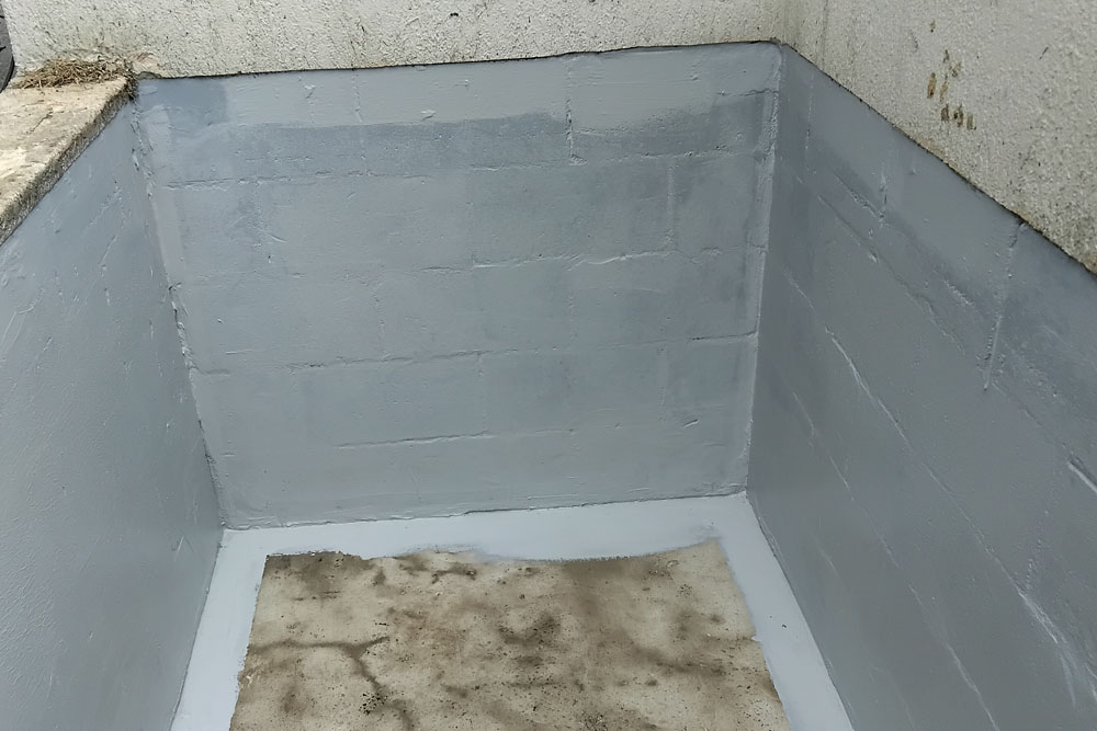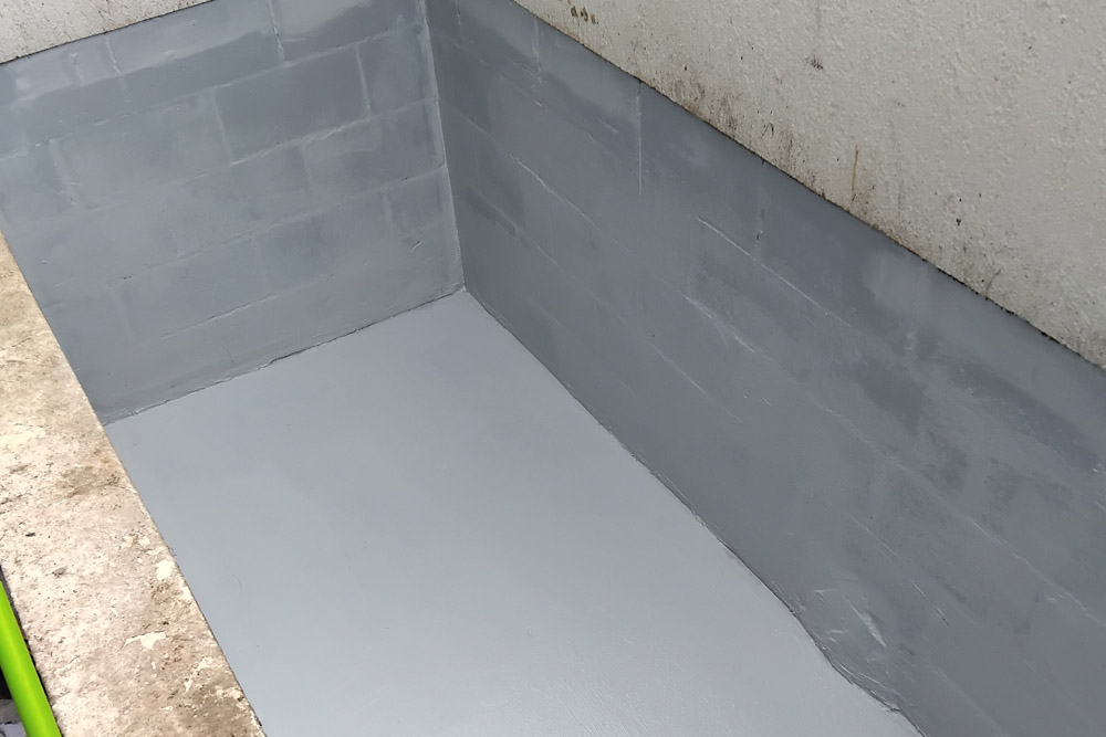 Below-ground protection using negative-side epoxy coatings, tanking membranes, and injection methods. -